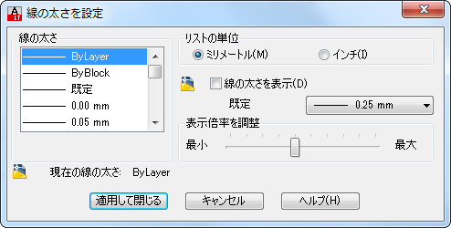 プロパティの 線種尺度 を、1 ではなく、100 、 200 、など、適当に変えてみる